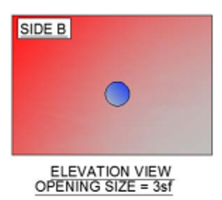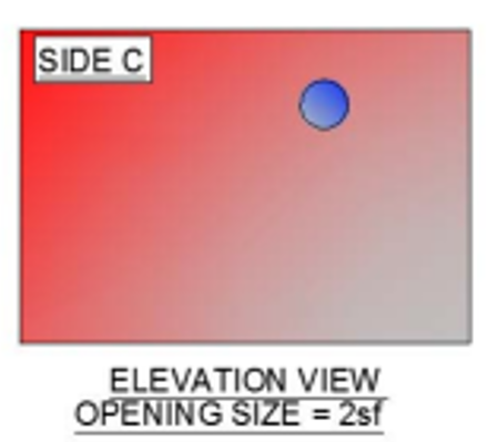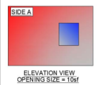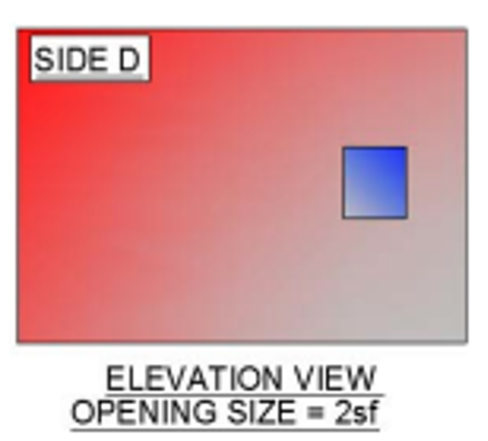 Consider a structure with five sides (four walls and a roof), having a gross area of 20 ft². The openings are shown in blue below: